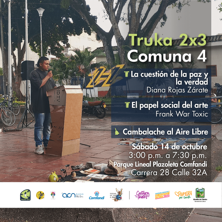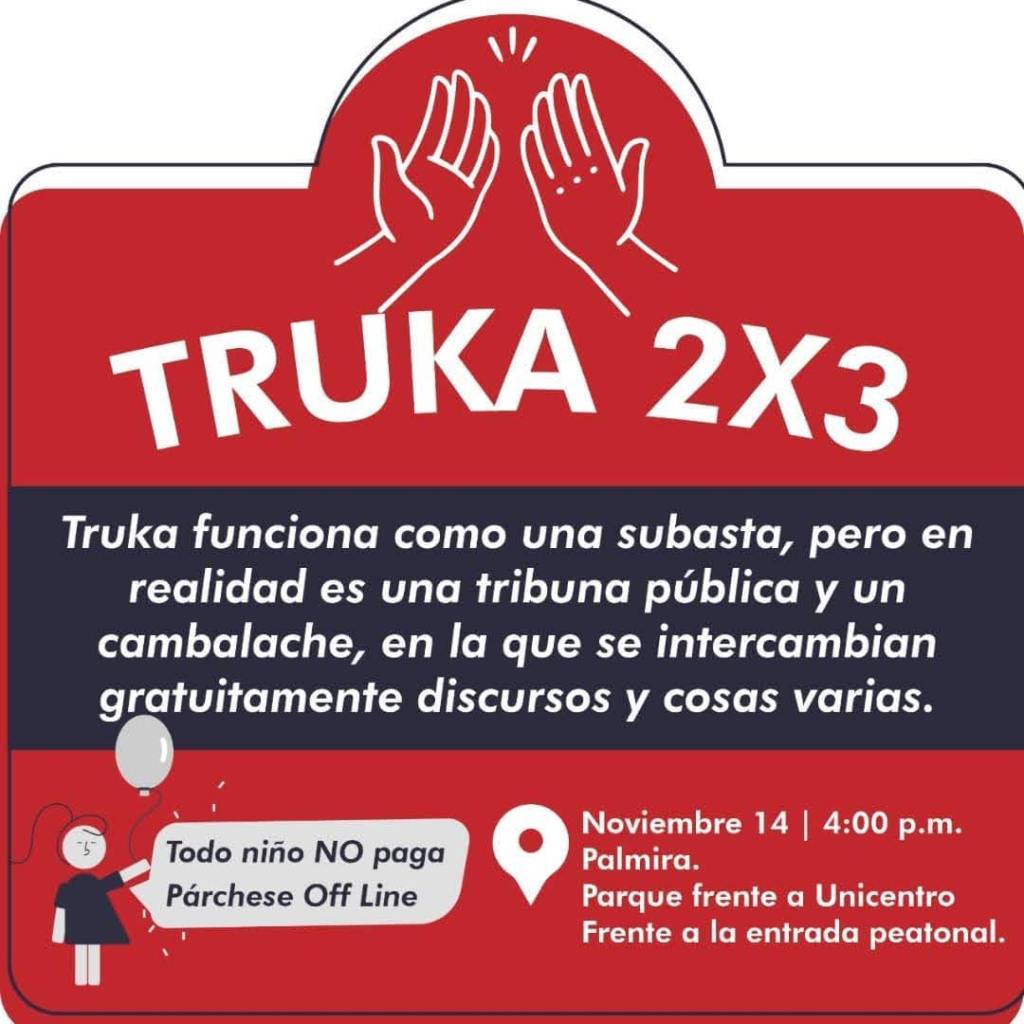 TRUKA deviene de la palabra trucar, o sea, golpear o chocar las manos; por ejemplo: – choque esas cinco, remite pues a un acercamiento, a un contacto, contrato social o pacto fraternal. Como concepto, también es una variación del significado popular de trueque o cambalache, a fin de ser usado tácticamente de manera más atractiva al gusto masivo y más o menos elitista de la cultura.